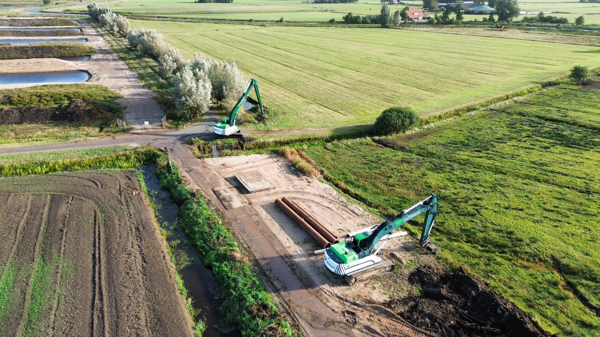 Onze werkzaamheden bestaan uit waterbeheer, het aanleggen van bouwwegen en een aanleghaven met kiepbrug, en het gefaseerd ontgraven van teelaarde, veen en zand. Het vrijkomende materiaal wordt per schip afgevoerd. Het project is opgedeeld in deelgebieden om het werk efficiënt en beheerst uit te voeren. De uitvoering beslaat meerdere jaren en zorgt voor continuïteit in inzet van mensen en materieel.